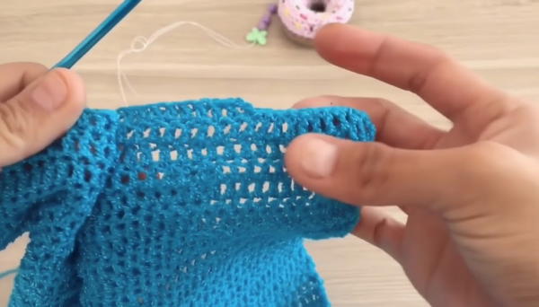 - Once the shaping is complete, work a row of single crochet, taking only the back loop strand.