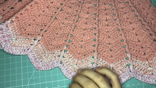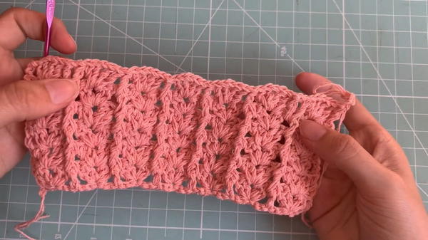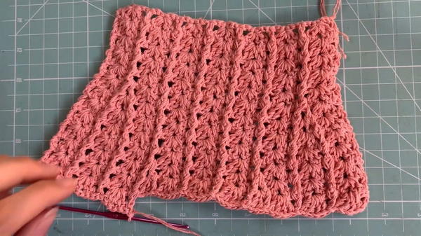 Step 14: Alternate front and back post relief stitches in rows to create a raised pattern consistent with the fans.