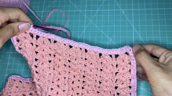 Step 13: To add 3D texture, alternate front post and back post double crochet stitches on raised positions.