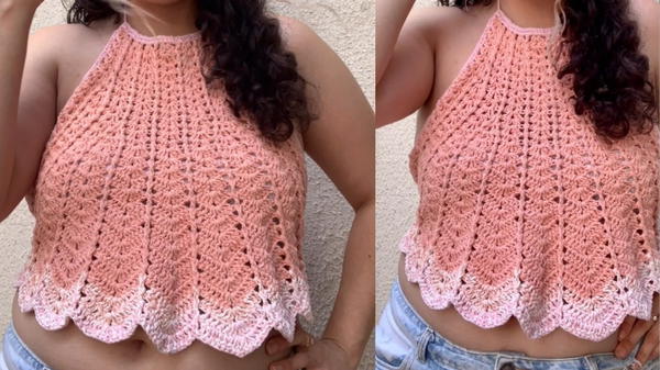 This Butterfly Carnation Crop Top pattern brings a blend of fun and sophistication through layered fan motifs and relief textures. With customizable sizing and tutorial-level guidance, you can create your own unique, eye-catching summer crop top.