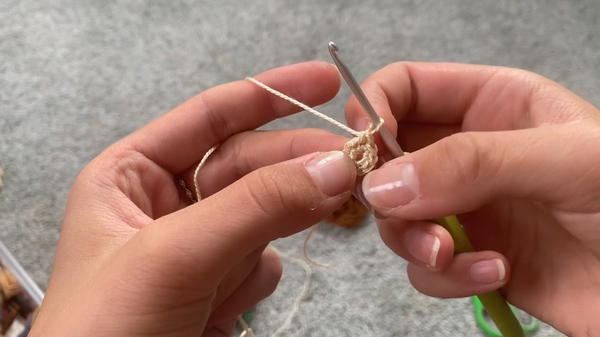 - Add 8 single crochets (SC) into the loop.