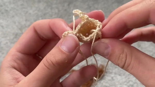 - For the second round, make 2 single crochets in each stitch until you reach your marker (16 stitches total).