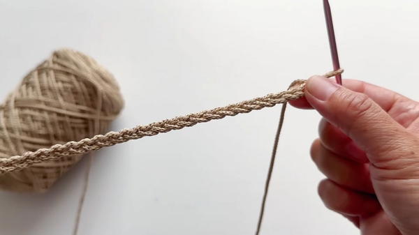 - Work single crochet stitches in the "bumps" of the cord, turning your work after each row.