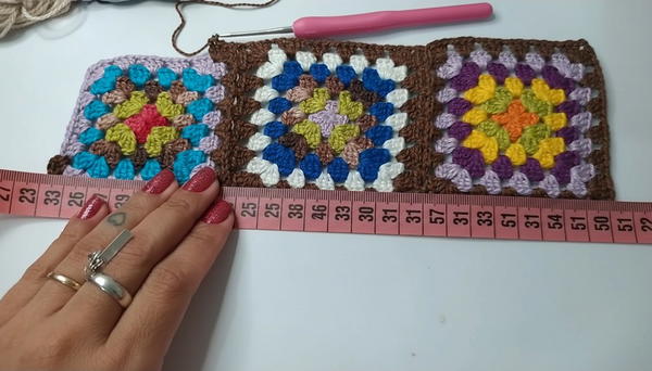 Always measure as you go! Different yarn tensions and square sizes will affect final dimensions, so constant checking of sizing is essential to ensure a perfect fit.