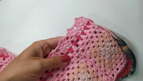 - Pin and sew (machine or hand) lining onto the inside back of the crochet panel, covering the entire front piece.