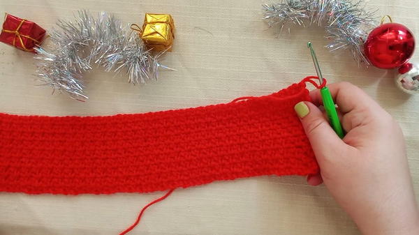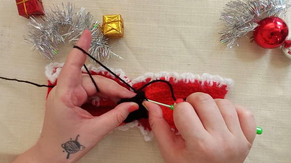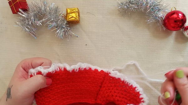 - Use soft yarn for the base and an extra fluffy yarn to enhance the festive look for the white border.