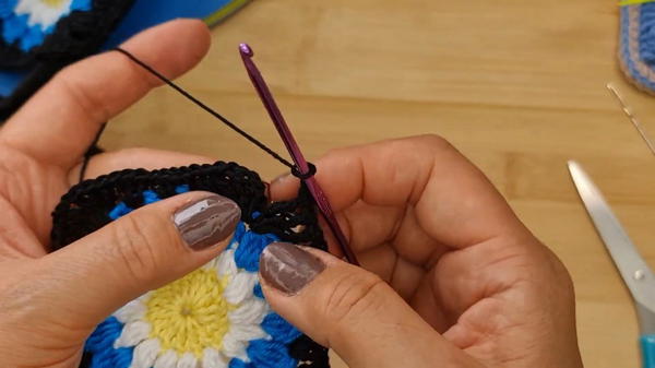 - Outer Border: Use black yarn to create a treble-crochet border, giving a defined square shape. Work into corners to shape the edges.