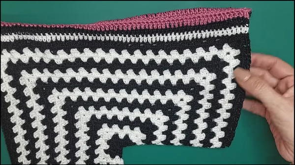- Incorporates multiple decorative borders: single crochets, double crochets, and striped cuffs.