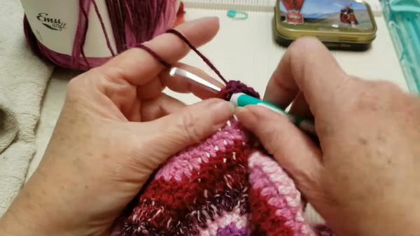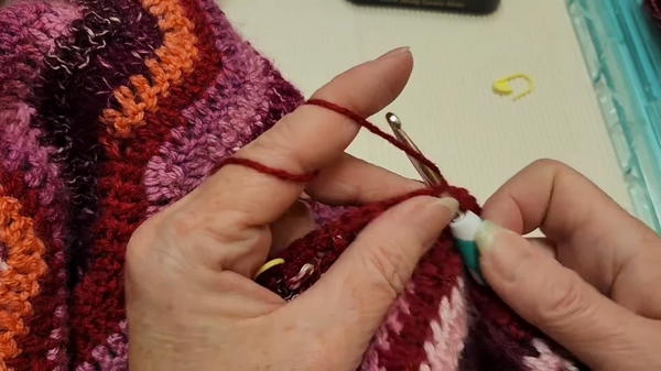 - Alternate rows of two contrasting yarns to add depth and vibrancy to the finished design.