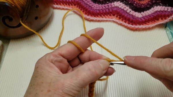 - Continue building rows until the rectangle reaches the desired length and size. Darla works a total of 70 rows for her shrug.