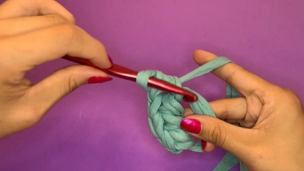 - Work 7 single crochet (sc) stitches into the ring plus the initial chain counts as 1 sc (total 8 sc).