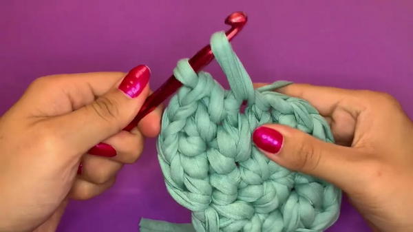 - Work a round of slip stitches evenly around the bag opening for a polished edge.