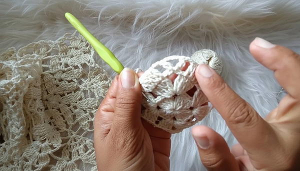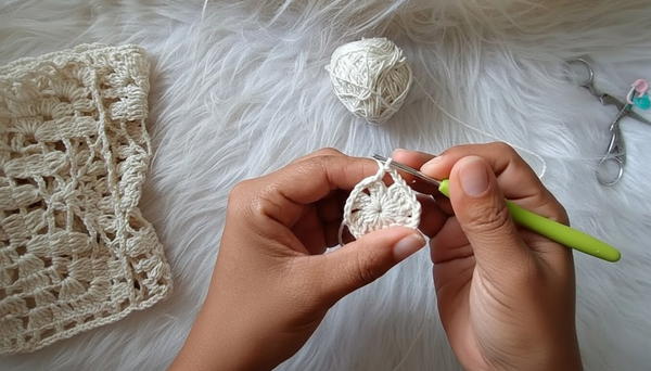 Always join motifs as you go to avoid complex post-assembly sewing. Maintain tension but allow enough stretch in fan chains to shape the blouse comfortably.