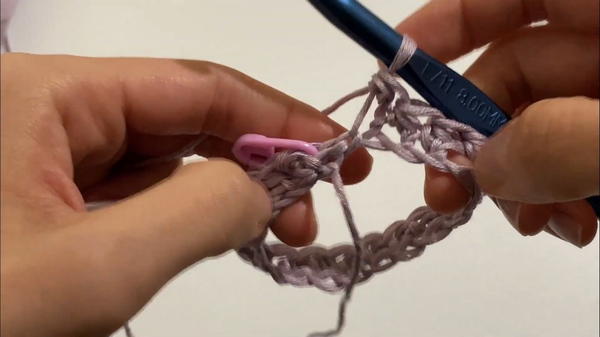 - Place stitch marker in the first hdc to denote round start.