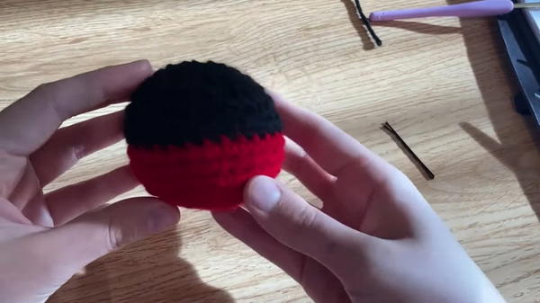 - Cut the First Color: Leave a small tail of red yarn and switch to black yarn.