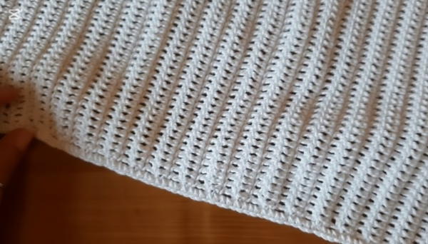 - Repeat this step to build rows until you reach the desired length for your top. In the tutorial, the maker completed 65 rows for her size.