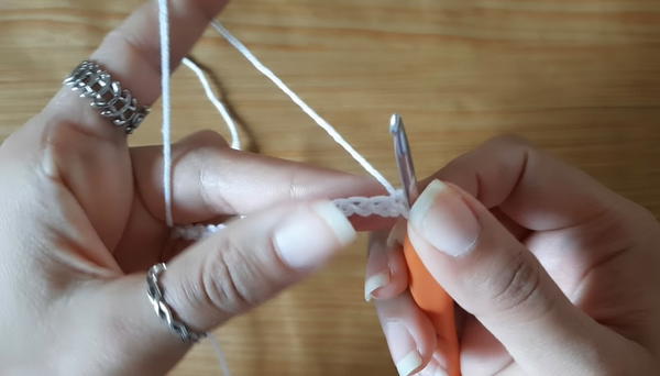 - Starting from the 3rd chain from the hook (counts as first dc), make one double crochet into each chain across.