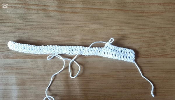 - Turn and make rows of double crochet to widen the strap, matching the width the instructor prefers (4 double crochet wide in the video).