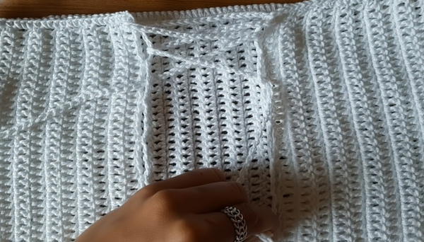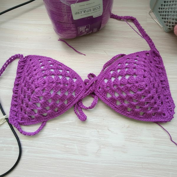 - Attach yarn at the side of the top where straps are desired, usually at the upper corners of the top.