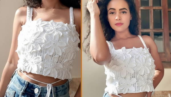This crochet floral crop top is a beautiful, fashionable project that combines basic stitches with creative detailing for an eye-catching garment. Following the clear step-by-step instructions will help you create a unique piece suited perfectly to your size and style. Whether you go for three layers of floral appliqués or just one, the design offers versatility and charm.