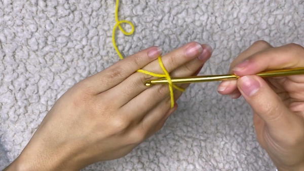 - Use yellow yarn to begin each flower: