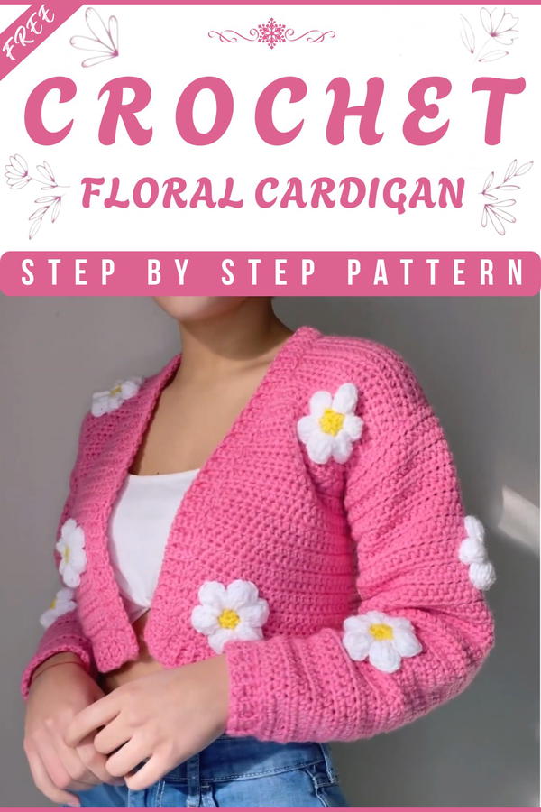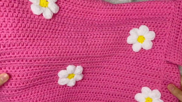 - Yarn: 4mm medium-weight yarn (yellow, white, and pink for flowers; any base color for cardigan)
