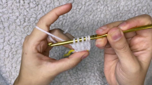 - Cut yellow yarn and switch to white yarn.