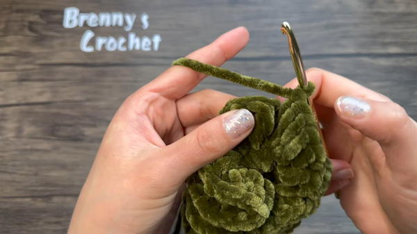 Voluminous Ruffle: By working many stitches into the base of the scrunchie, the final round creates a large, ruffled, and luxurious texture.