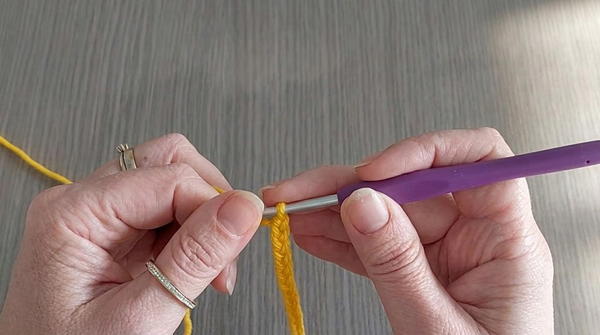 - Make 1 single crochet (sc) in each chain across.