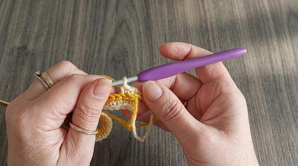 - 1 fl-dc stitch into the front loop of the corresponding stitch.