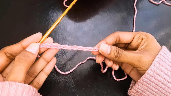- Crochet a chain until it matches the width of the front panel (Marida used 60 chains for her example).