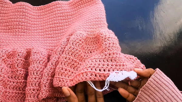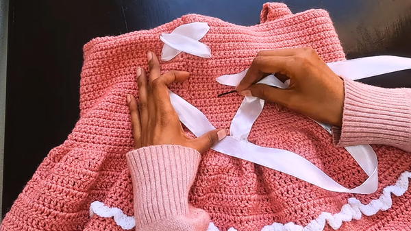 - Work across the bottom with two double crochet stitches per stitch to form the ruffle effect.