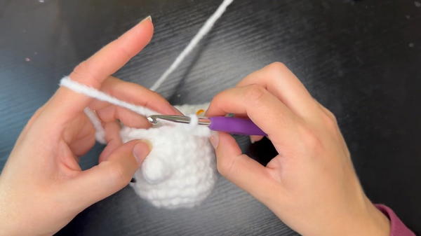 - Round 1: Single crochet into each stitch, making 2 stitches in every existing stitch (increase each stitch). You’ll have 12 stitches by the end.