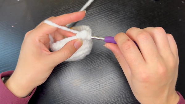 - Yarn over and chain one to secure the base ring.