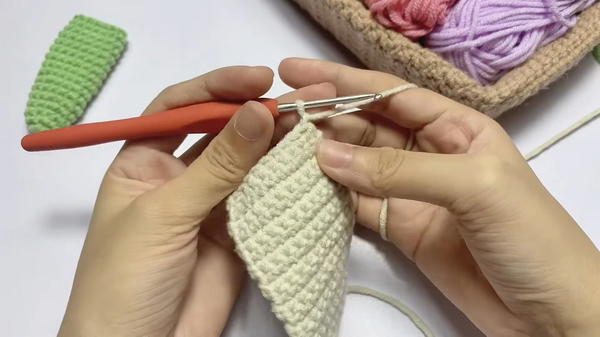 Work 20 rounds of sc increasing/decreasing as necessary to shape leaf.