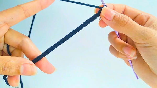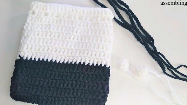 - Using black yarn, chain 85 stitches to form the first drawstring.