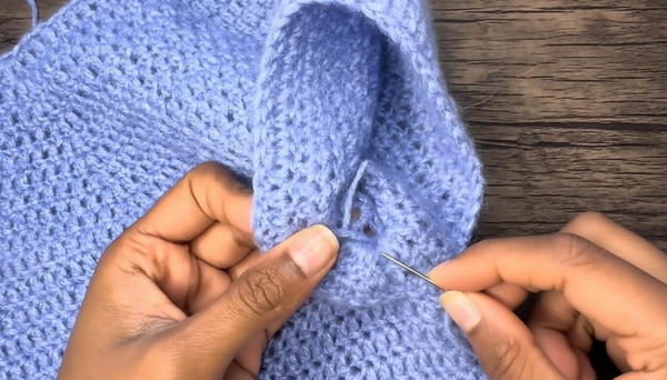 - Use yarn needle to weave loose ends through stitches securely.