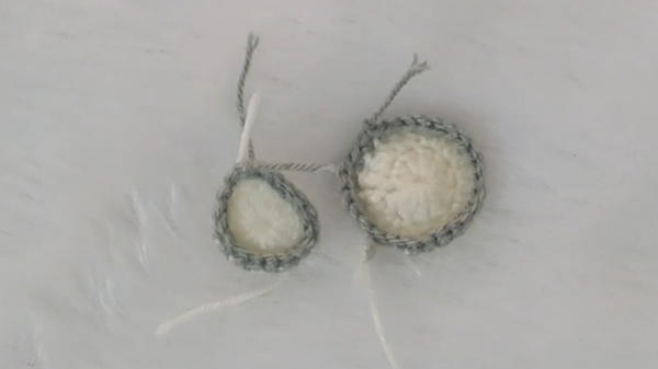 - Work single crochet decreases across the entire round, pulling the piece together.