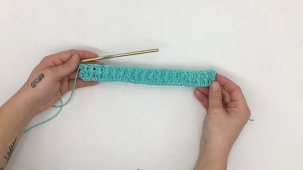 - Turn your work and chain 2 (this does not count as a stitch).