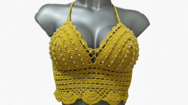Sunshine and summer vibes meet style in this stunning design. The crochet crop top features delicate stitch work that creates a soft, airy texture, making it light and comfortable for warm days or beach outings. The design combines casual charm with a modern look, making it easy to wear with high-waisted shorts, skirts, or layered under a jacket for cooler evenings.