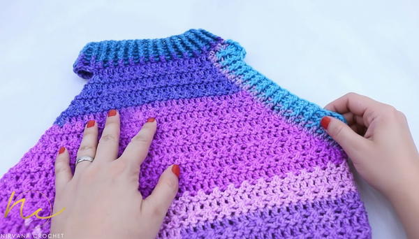 - Place front and back pieces together and join with slip stitches or single crochet at the sides to form a tube.