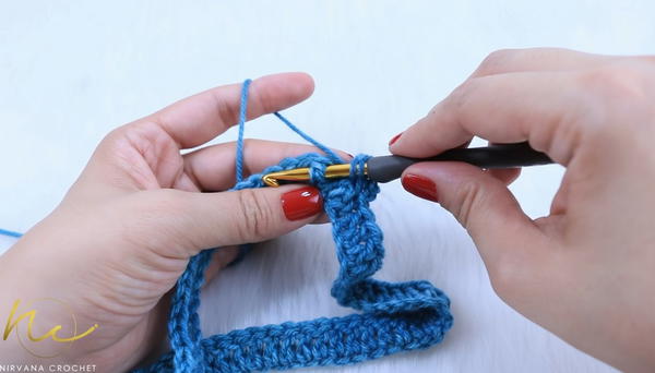 - Skip one stitch, then dc in next, then dc in skipped stitch to cross stitches.