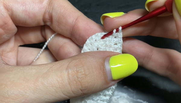 - In the final chain, work 3 DC into the same stitch (this will shape the curve of the cup).