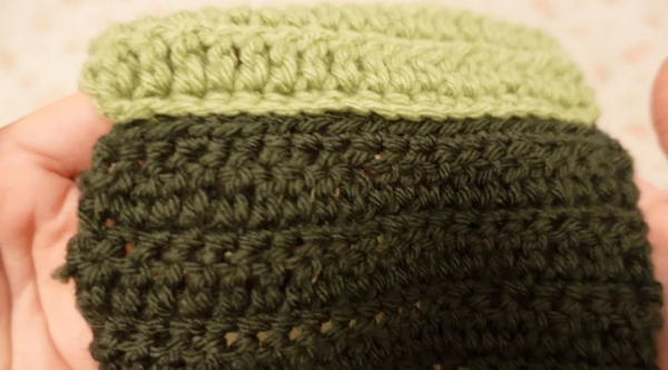 - Alternate every row between single crochet and double crochet until you finish 13 rows (7 single crochet rows and 6 double crochet rows).