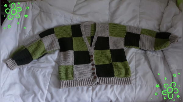 - A customizable, colorful design unique to patchwork-style cardigans.