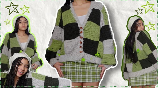To recreate Creator patchwork cardigan, you’ll need: