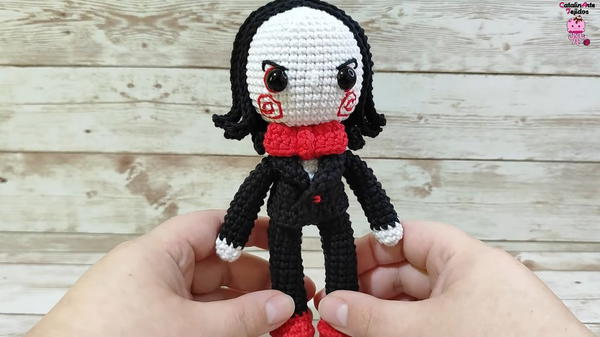 - Theme-based Design: Inspired by the Billy doll from Saw, this project is part of a Halloween collection of horror-themed crochet characters.