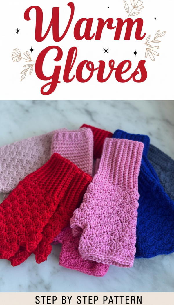 This detailed fingerless glove pattern combines functionality and beauty with a stretchy cuff and intricate shell stitch design. Whether for yourself or as a gift, mastering this pattern gives you cozy, charming gloves with the perfect thumb fit.