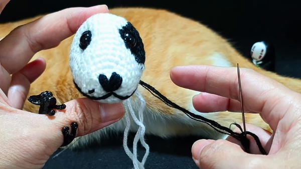 For finishing touches, Ni advises viewers to position accessories (eyes, buttons) carefully in marked areas to achieve symmetry and the desired puppy expression. Additionally, curving the ears for the final shape is best accomplished using glue but can be skipped depending on available materials.