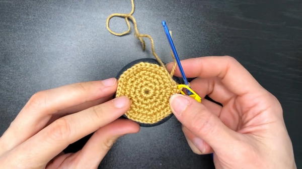 - Crochet continuously in spirals for rounds 2–5, adding stitches gradually to match the lid's size.